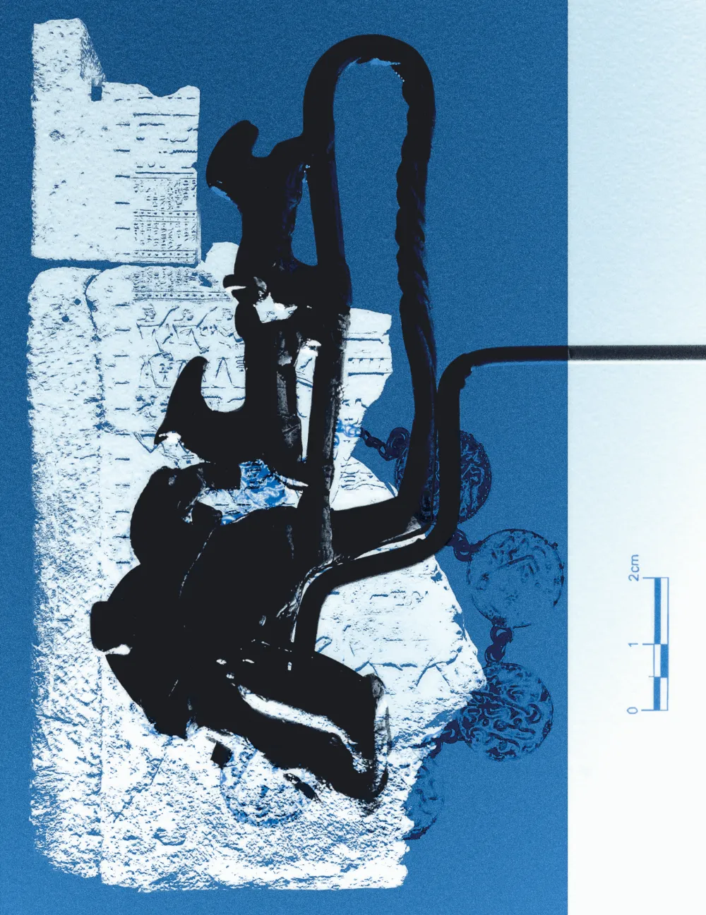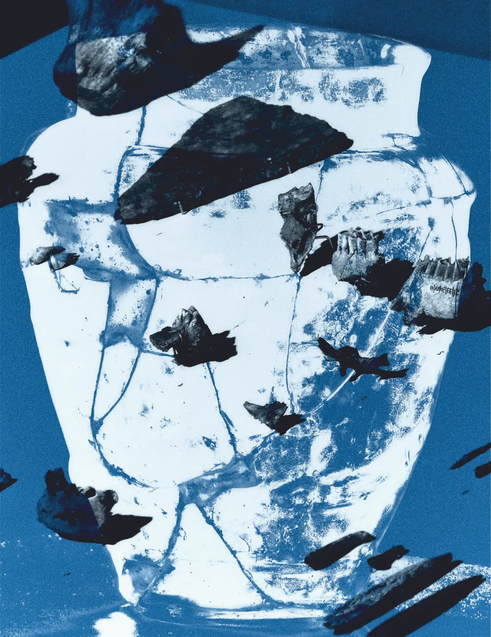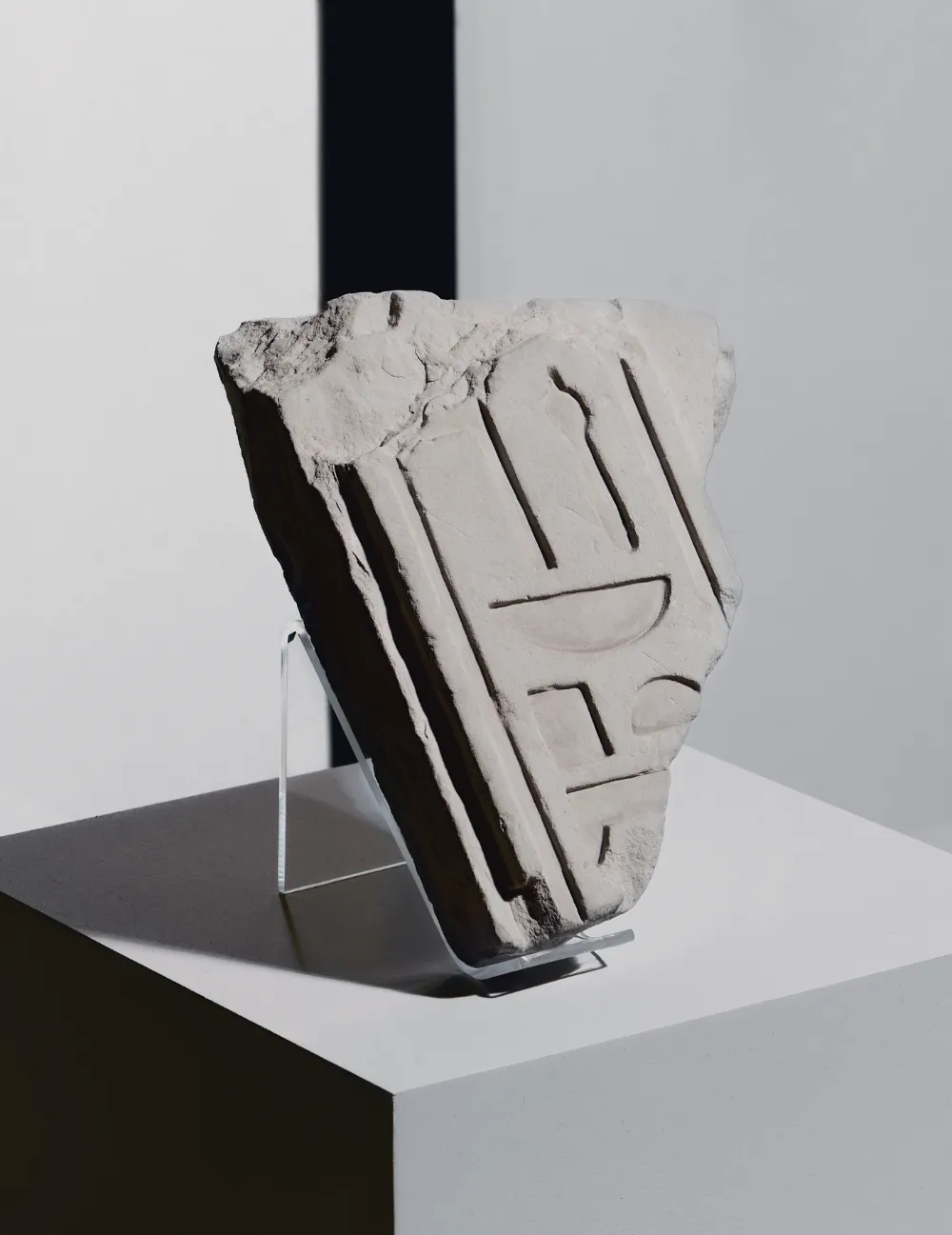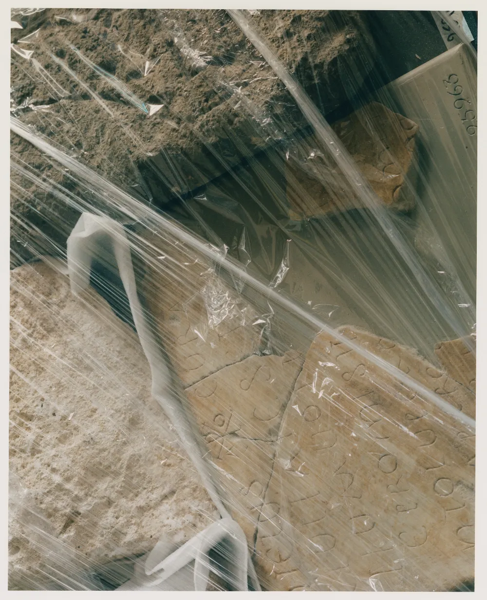 The relic unearths concrete poetry at scale in monochrome through chaos.