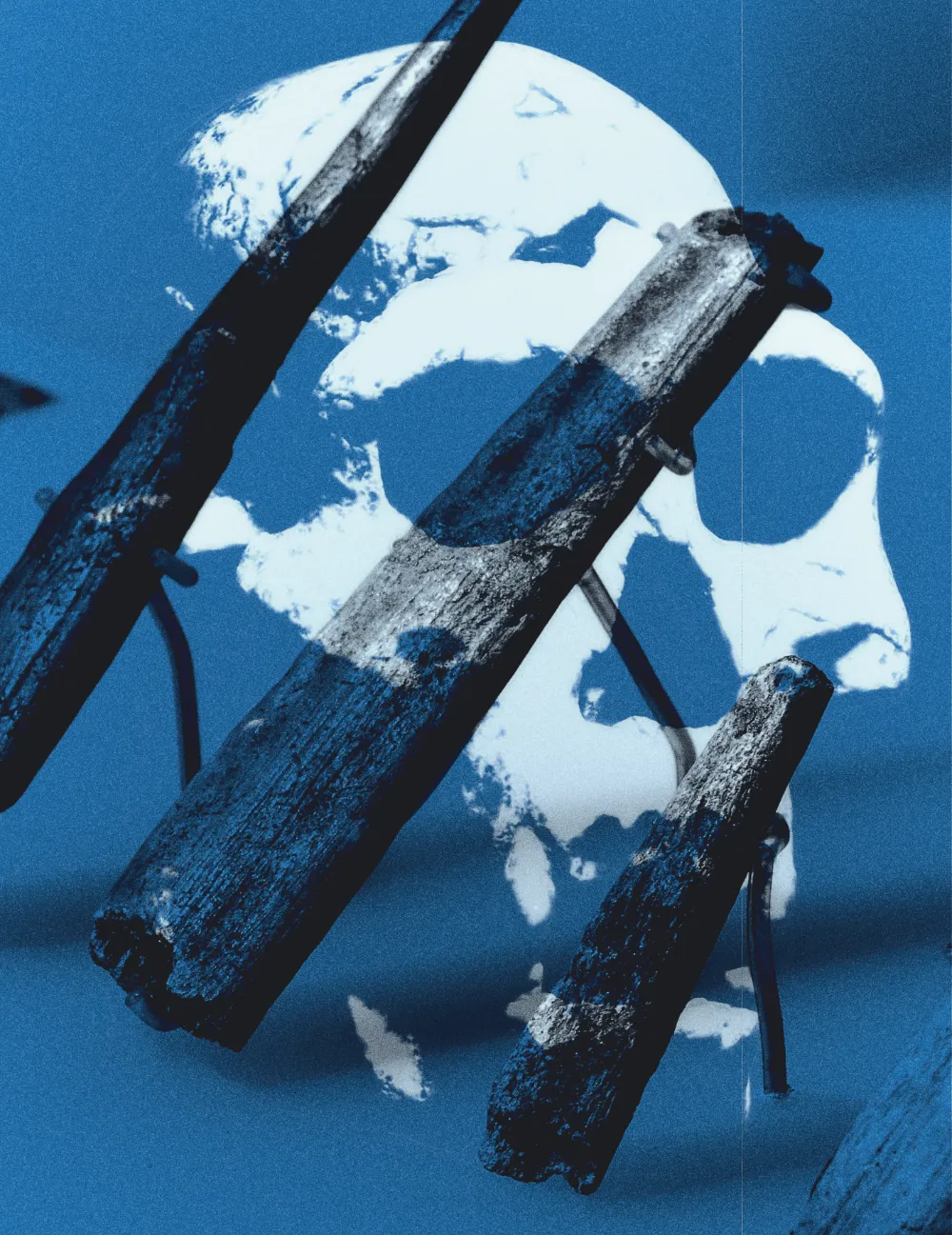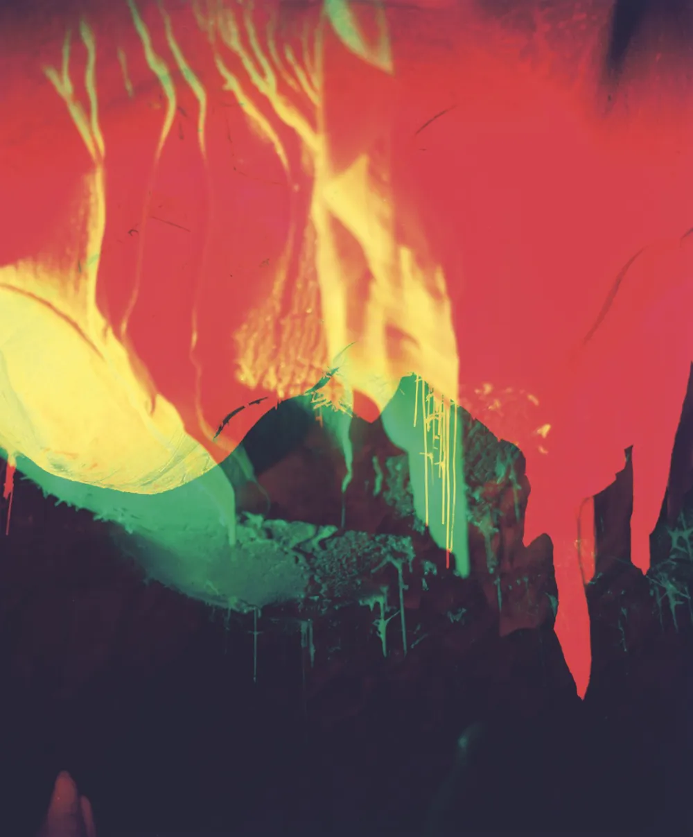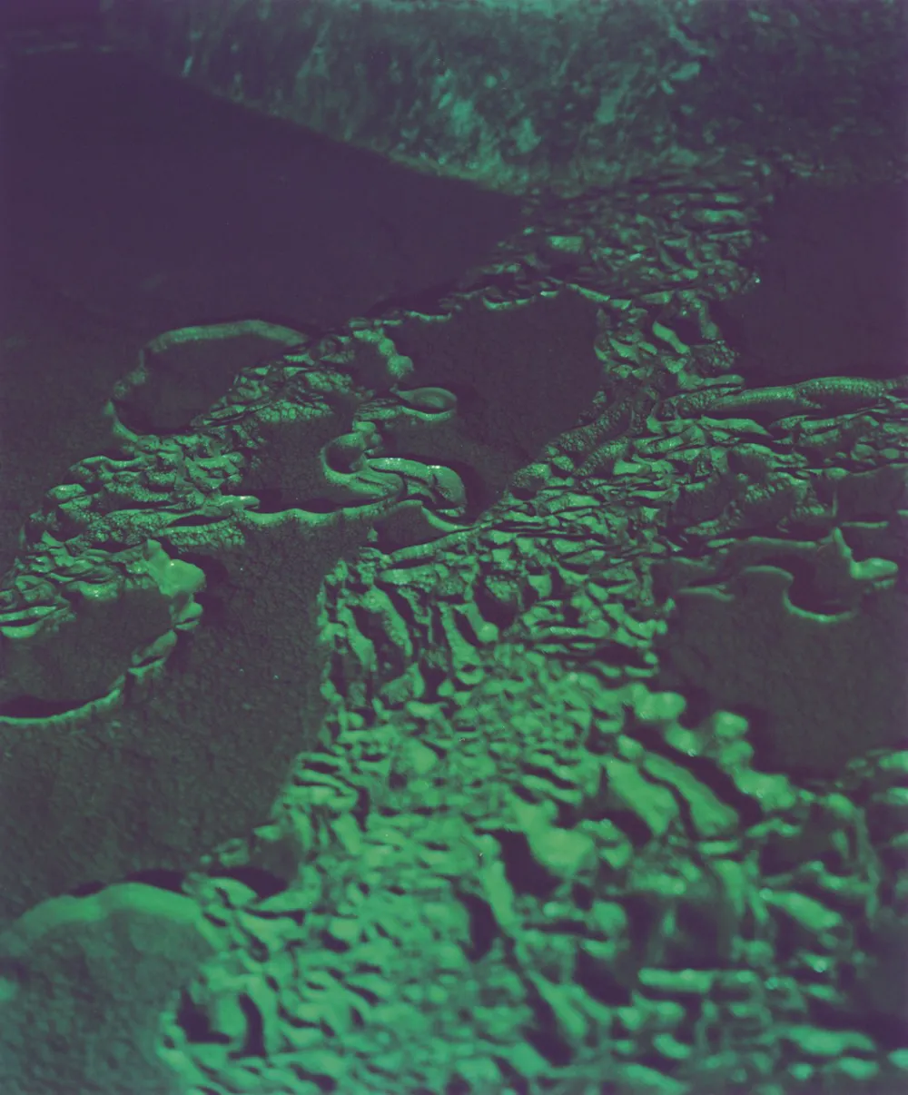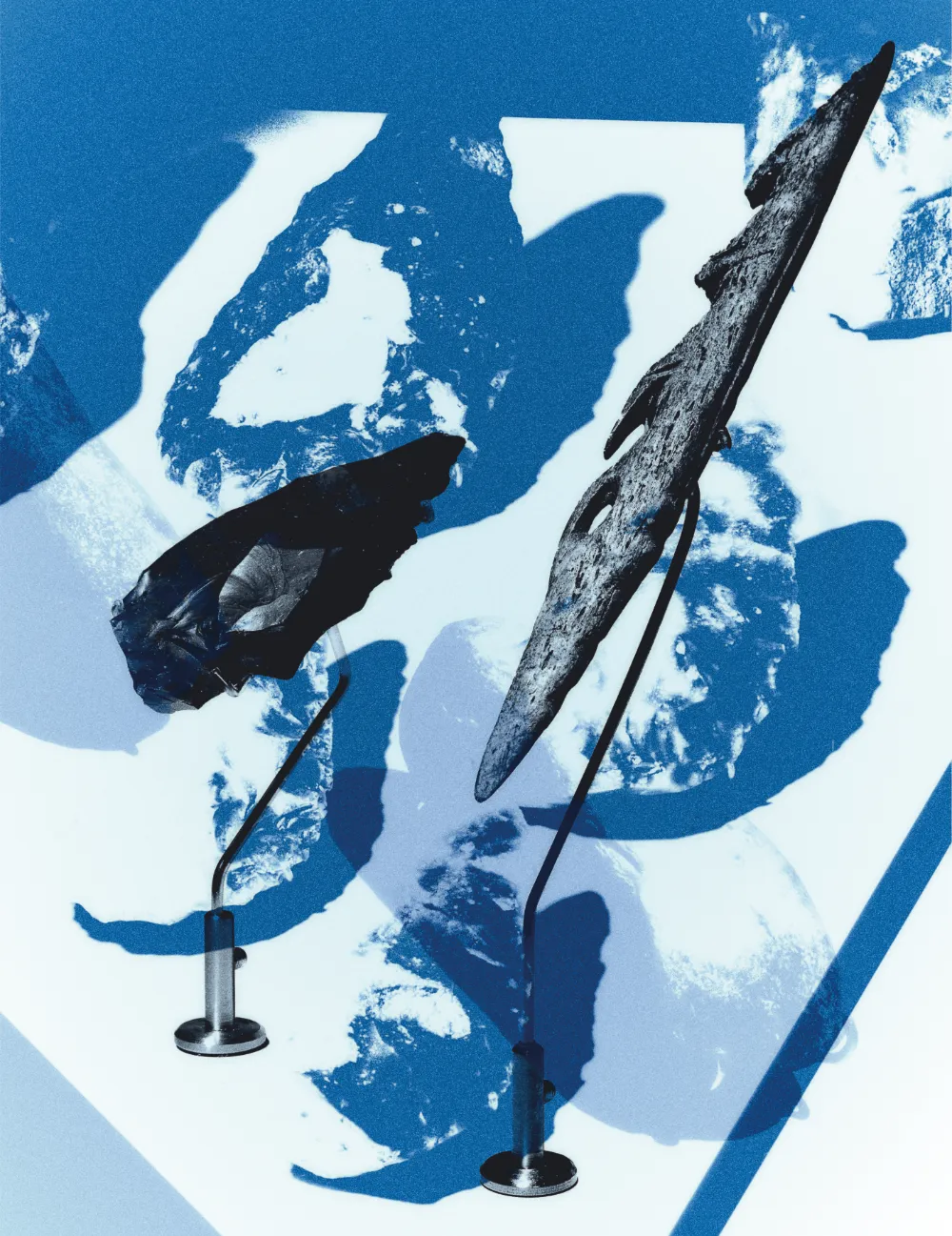 The relic unearths concrete poetry at scale in monochrome through chaos.