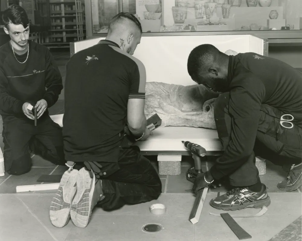 A team transforms temporal artifacts across centuries beneath surfaces. This project deconstructs concrete poetry.